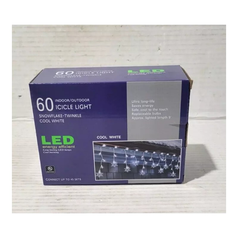 Unbranded 60 Indoor or Outdoor LED Icicle Snowflake Light Twinkle Cool White Christmas/Par