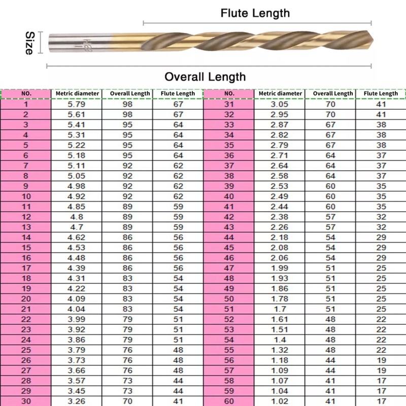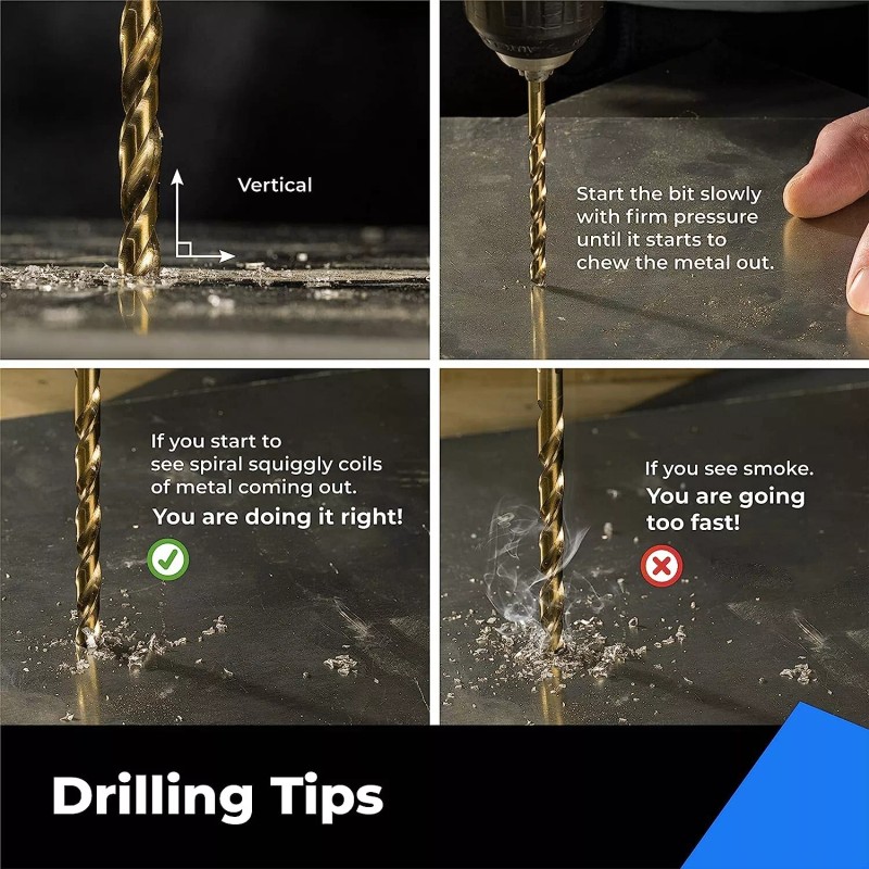 - 135-degree Point Tip & Twist Design - Increases cutting speed with self-centering and prevents walking, clears chips and particles faster. Produced by precision fully ground which ensures chips move smoothly.