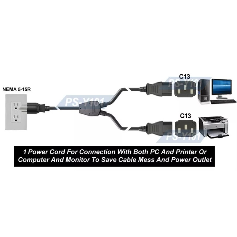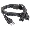 This universal power splitter cable has an AC power plug in NEMA 5-15R style with 2 of IEC320 C13 connectors on the other end.