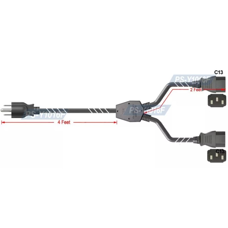 Easy power splitter solution for powering any 2 electronic devices built with C14 inlets simultaneously from a single AC outlet such as computers, monitors, servers and more.