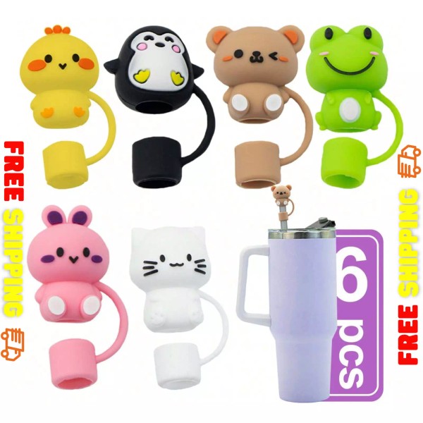 6pcs Silicone Animal Shape Straw Caps for 30/40oz Cups – Soft, Reusable, 10mm Straw Covers – Perfect Valentine's Day Gift