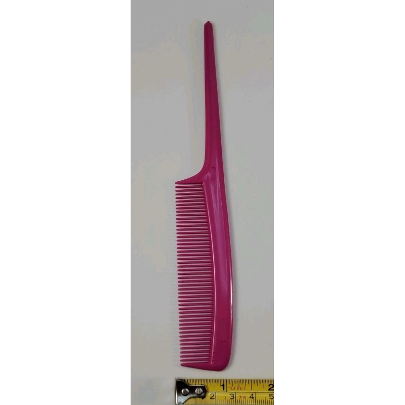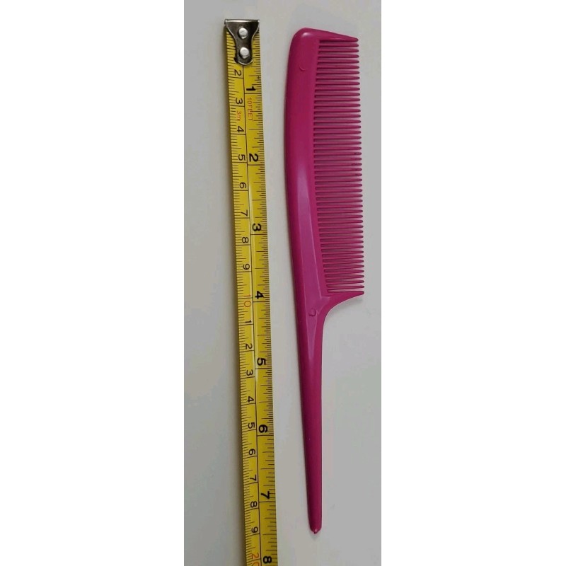 Brand new pink rat tail comb made of durable plastic, measuring 7.5 inches in length. Ideal for sectioning, parting, teasing, and precise styling. The long, pointed tail is perfect for creating clean lines and separating hair with ease.