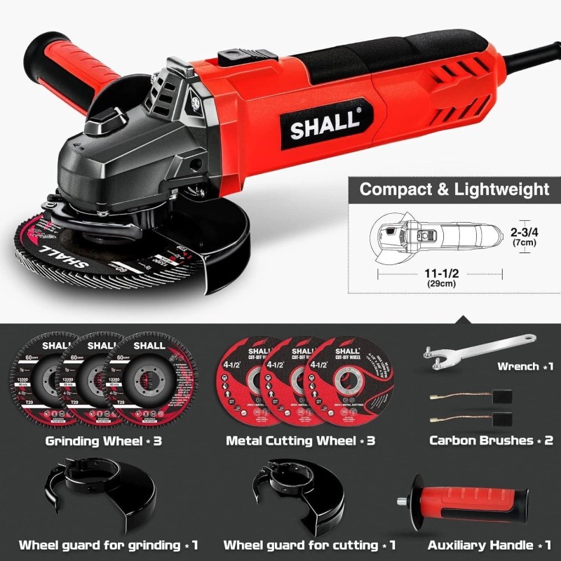 Safety & Convenience Design : It comes with 2 different types of Tool-Free wheel guards specifically designed to protect the users during cutting and grinding; Additionally, the slide switch has a lock-off/on feature for easy operation and the raised spindle lock makes it easy and safe to change its accessories