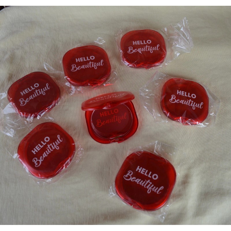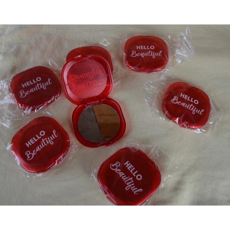 7 New in Individually Sealed Packages Red Purse Pocket Compact Mirrors. 'Hello Beautiful'. Great Swag Bag Item or Party Favor.