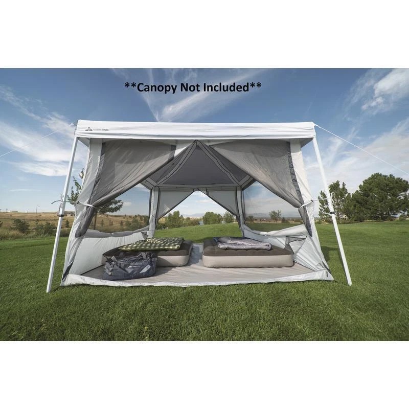 Multipurpose 2-in-1 design can be used as a screen house or cabin tent Clip-in hanging design uses your 10 ft. x 10 ft. Straight-Leg Canopy (sold separately) as a frame for your screen house/tent Nine-foot center height provides cathedral ceilings