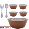 7-piece set includes 1 serving bowl, 4 salad bowls, 1 salad fork, and 1 serving spoon