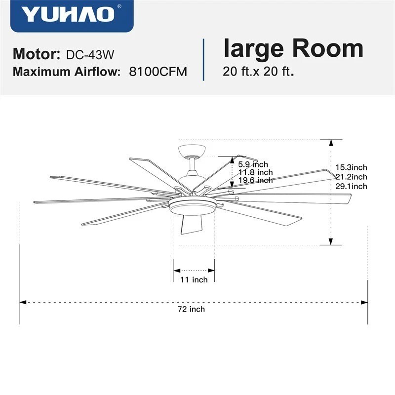 - Low noise and quiet DC motor provides a peaceful breezing environment.