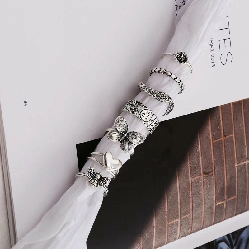 7PC Pop Boho Retro Finger Rings Set Butterfly Flowers Bee Heart Style Ring 0518