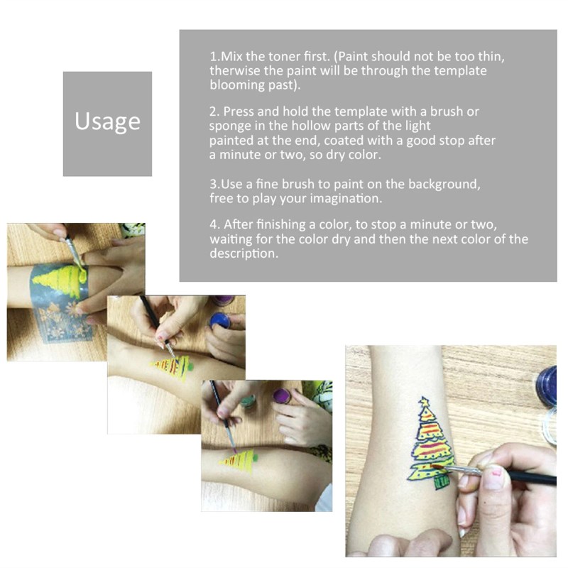 7styles/set face paint stencil with different patterns: flower, butterfly, etc will increase unique and beautiful design to your face and body. Reusable design for repeat and durable use.