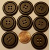 Set of 8 large matte dark brown & black plastic sew-through buttons 1" 25.4mm.
