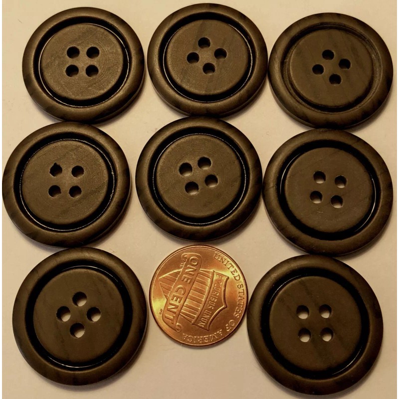Unbranded 8 Large Matte Dark Brown & Black Plastic Sew-thru Coat Buttons 1" 25.4mm 10172