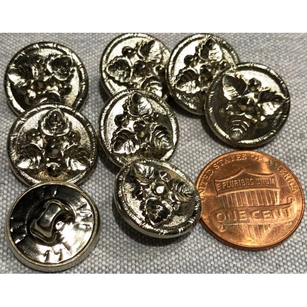 For sale is a lot of 8 silver tone metal buttons 5/8" 15.5mm.