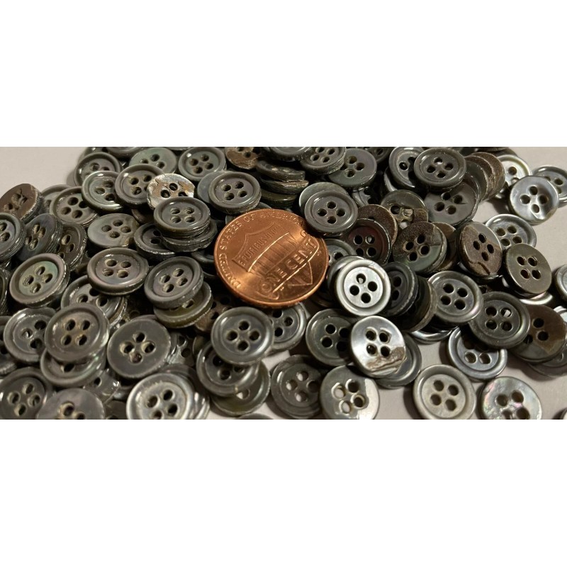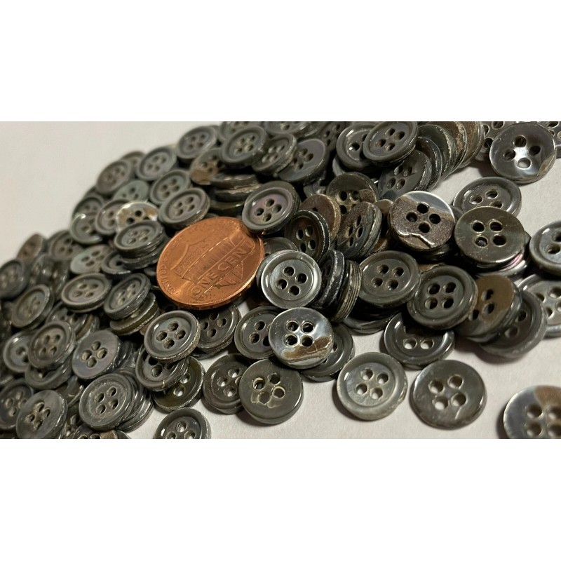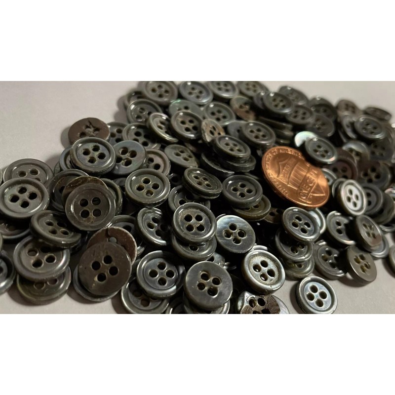 8 vintage gorgeous tiny small dyed dark gray trocas shell MOP sew-through 4-hole buttons 10mm 3/8". Beautiful iridescence.