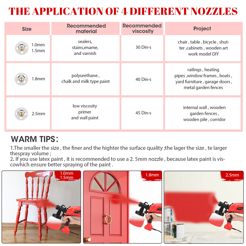 [Easy to use and clean] Painting can be easily assembled without tools. Even if you are a beginner, you can get started easily after reading the manual. It is very important to clean the paint sprayer thoroughly after use. It is equipped with a cleaning brush and needle, which can remove any hardened paint left in the nozzle part, so that you can clean it easily and effectively. We also include a spare washer so that you can replace it.