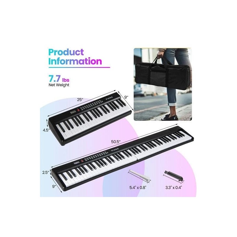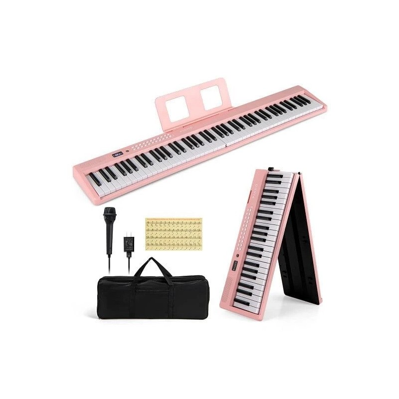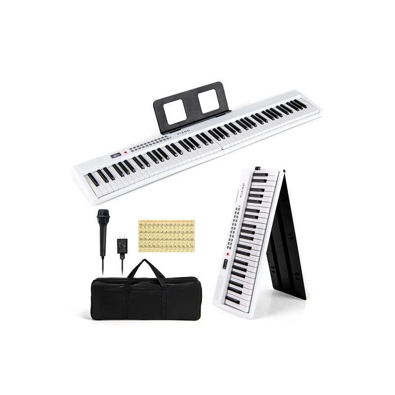 Unbranded 88 Key Foldable Electric Keyboard Piano with Wireless MIDI and Dual Speakers-Bla - WHITE