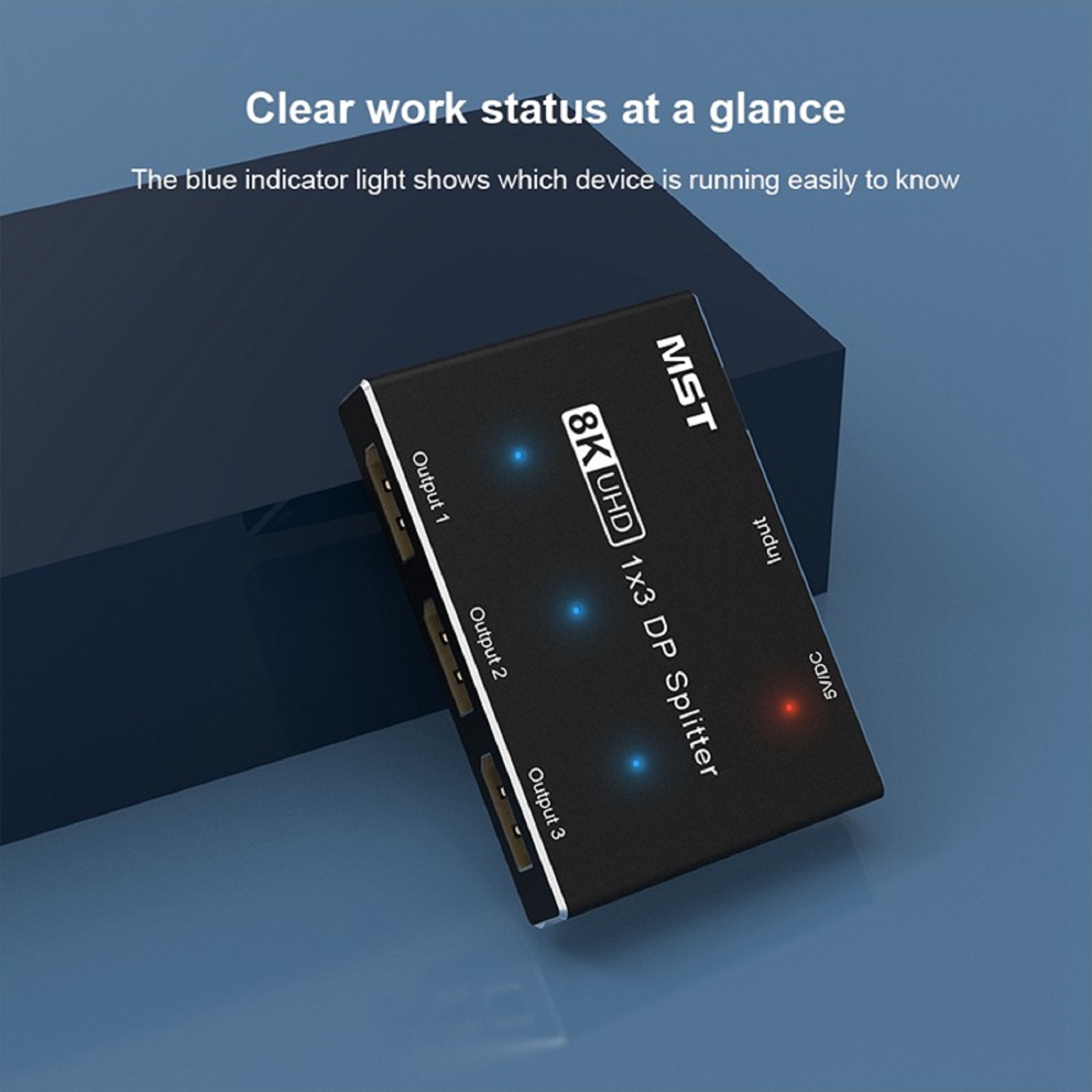 8K 1X3 DP Splitter 8K60Hz MST SST Hub Multi Monitor Splitter with Extended Display and Mirror Mode