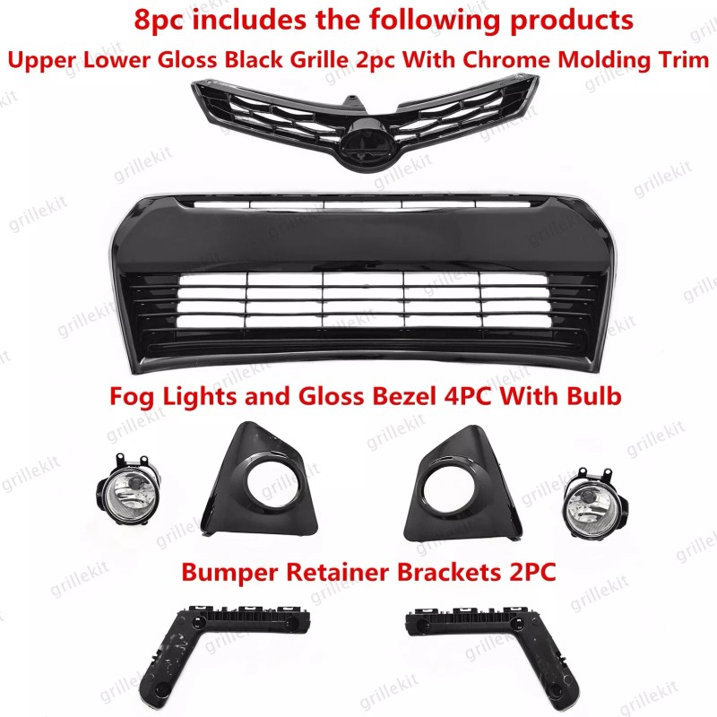 Unbranded 8PCS For Corolla S 2014-2016 Chrome Grille Mesh Fog lamps Bumper Brackets Kit