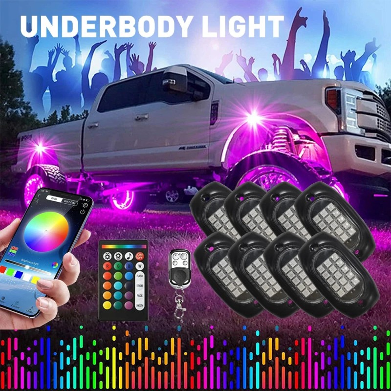 Unbranded 8Pods RGB LED Rock Offroad Lights Music Bluetooth Underglow Wireless Neon Lights
