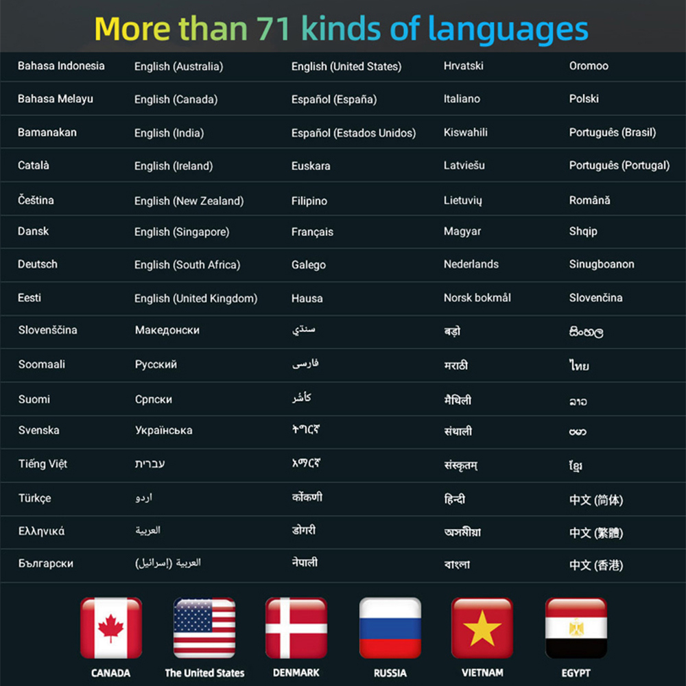 11. Languages ??with multiple on-screen menus: Chinese (Simplified), Russian, Spanish, Turkish, Russian, Hebrew, Italian, Chinese (Traditional), Arabic, French, German, English, Portuguese, 70+ languages ??including Korean, Thailand, etc.