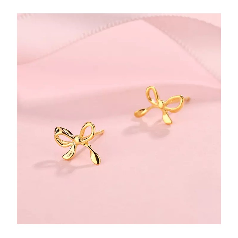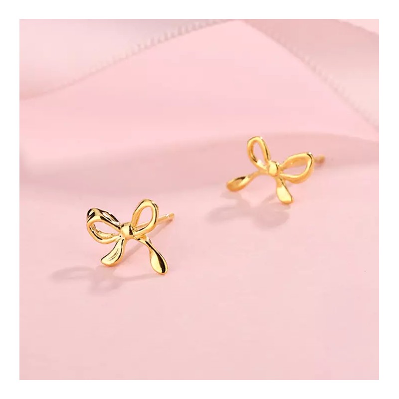 Unbranded 999 Sterling Silver Gold Tone Butterfly Bow Sensitive Stud Piercing EARRINGS I46
