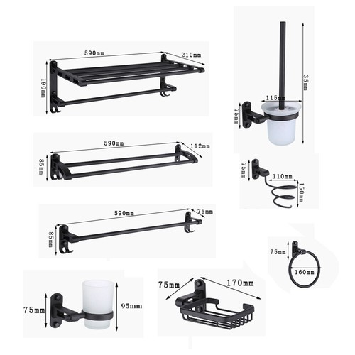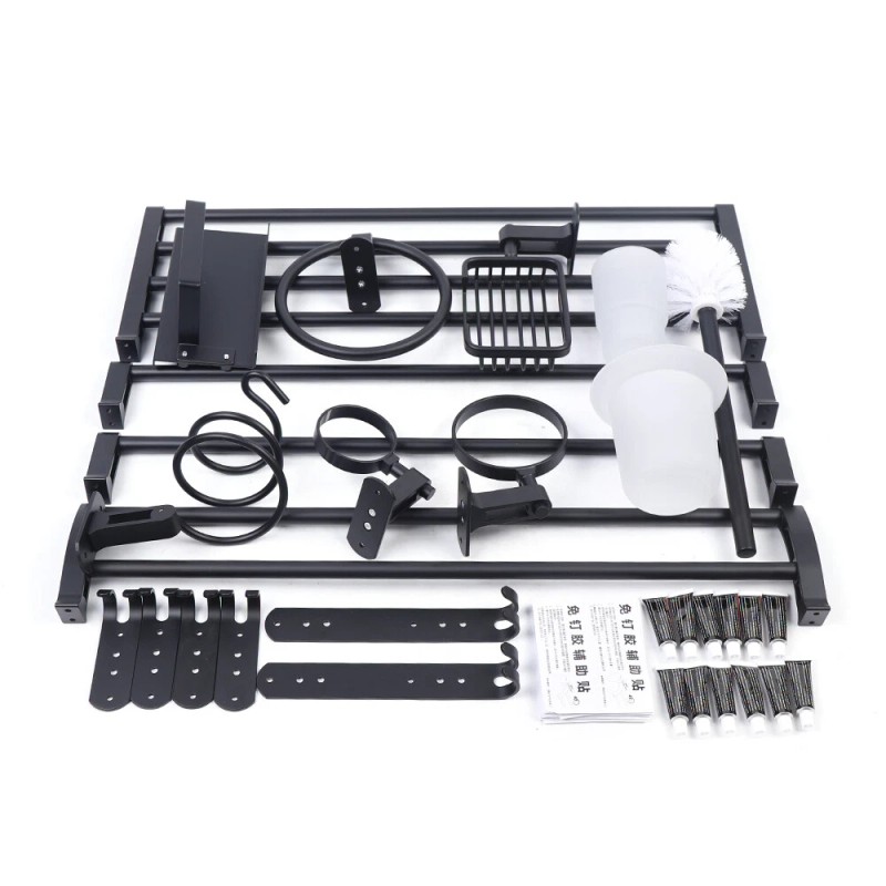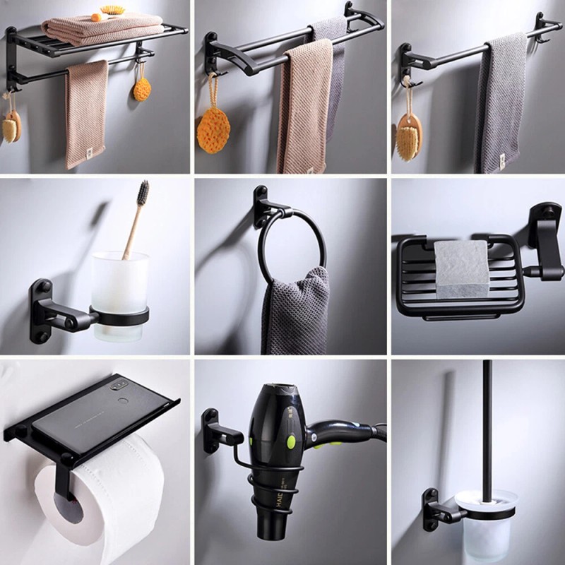 Unbranded 9PCS Bath Accessory Set Wall Mounted Bathroom Hardware Black Aluminum Towel Bar