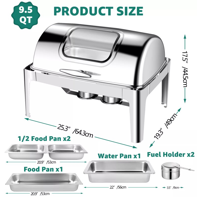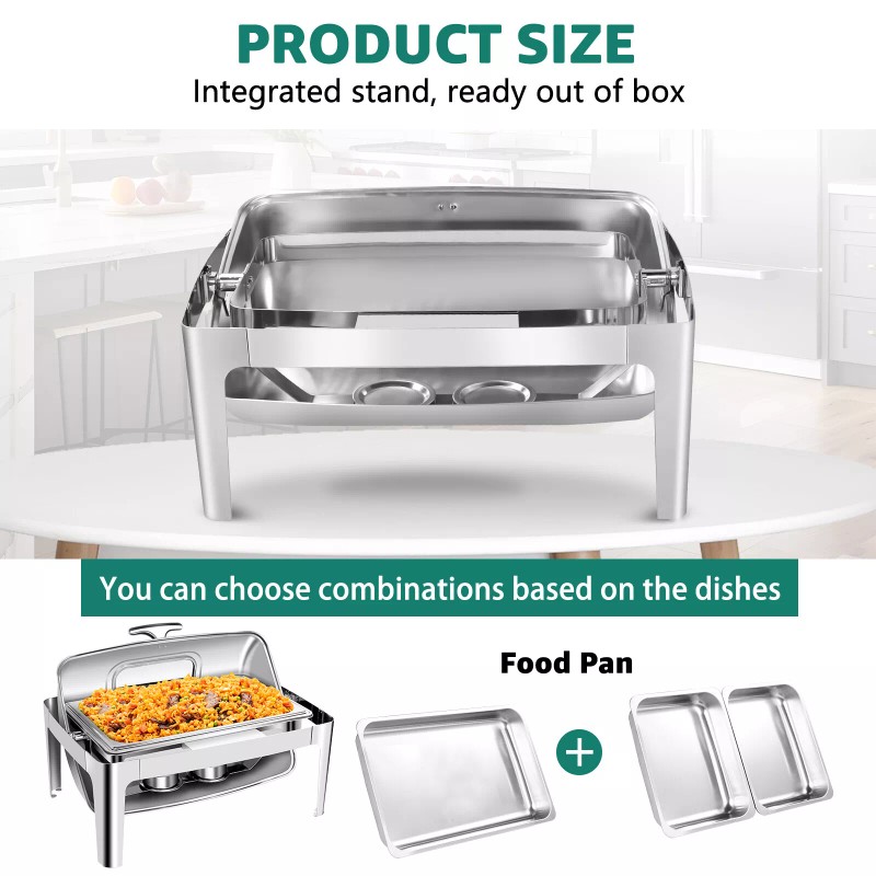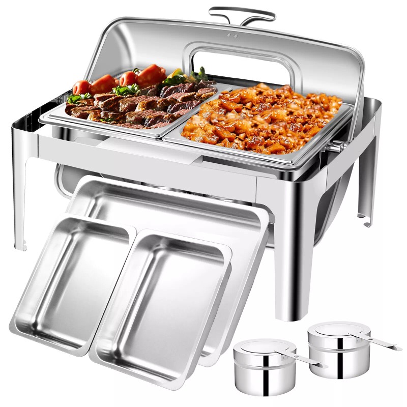 Unbranded 9QT Roll Top Chafing Dish Buffet Set Stainless Steel Food Warmer Catering Warmer