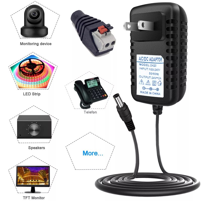 Unbranded AC/DC 24V 2A Power Supply Adapter Transformer For 5050/5730 LED Strip Light 48W - 2PCS 24V 2A Power