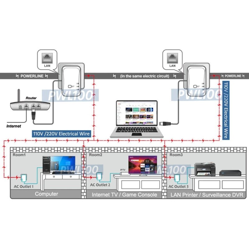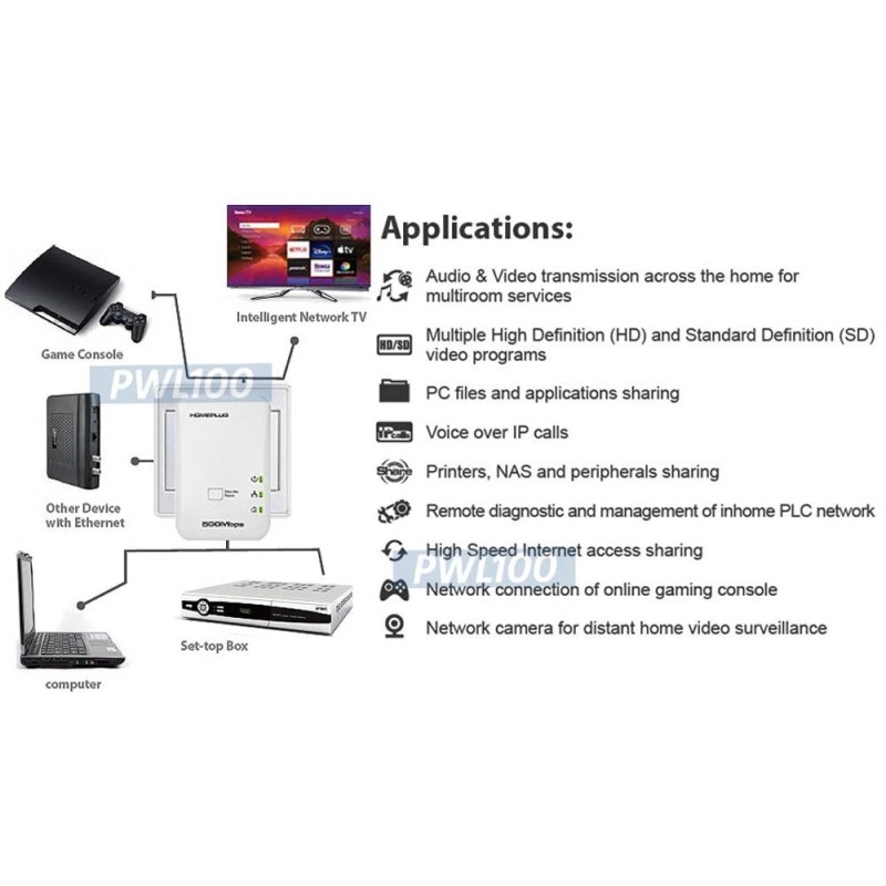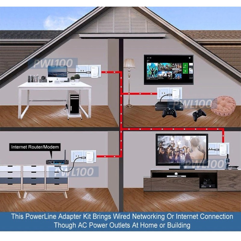 - This powerline adapter kit brings wired networking or internet connection though AC power outlets of each room and floor at home or in the building.