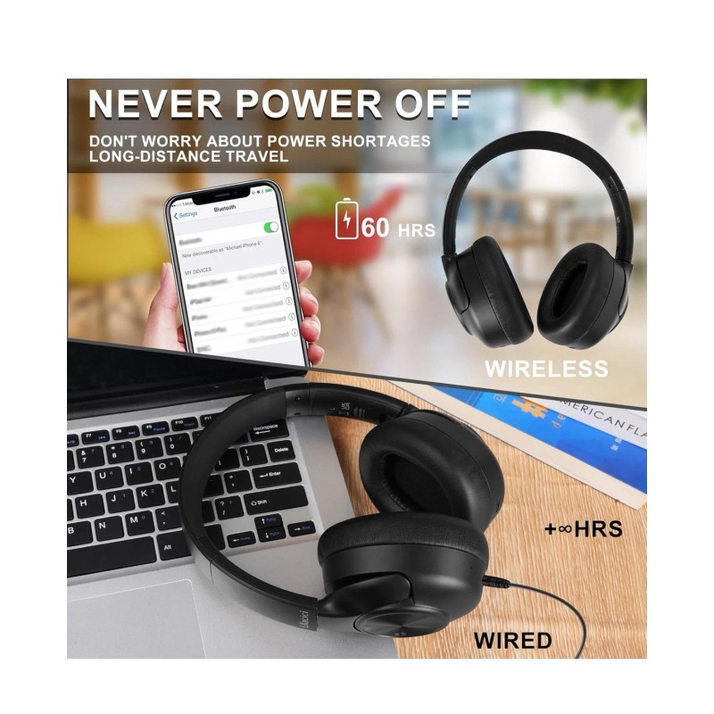 Multi-functional Connectivity: In addition to wireless Bluetooth connectivity, these headphones also support wired connections with both USB-C and AUX cables included, ensuring uninterrupted music playback regardless of battery status.