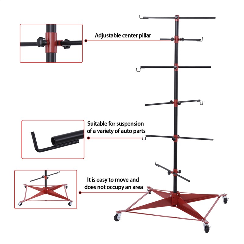 Enhance your workshop with our versatile car bumper paint stand. Designed for long-term use, it can support two panels simultaneously. Adaptable to various automotive accessories, it boosts workflow efficiency. Easy and quick to set up, users can start using it right away. A must-have for automotive professionals!