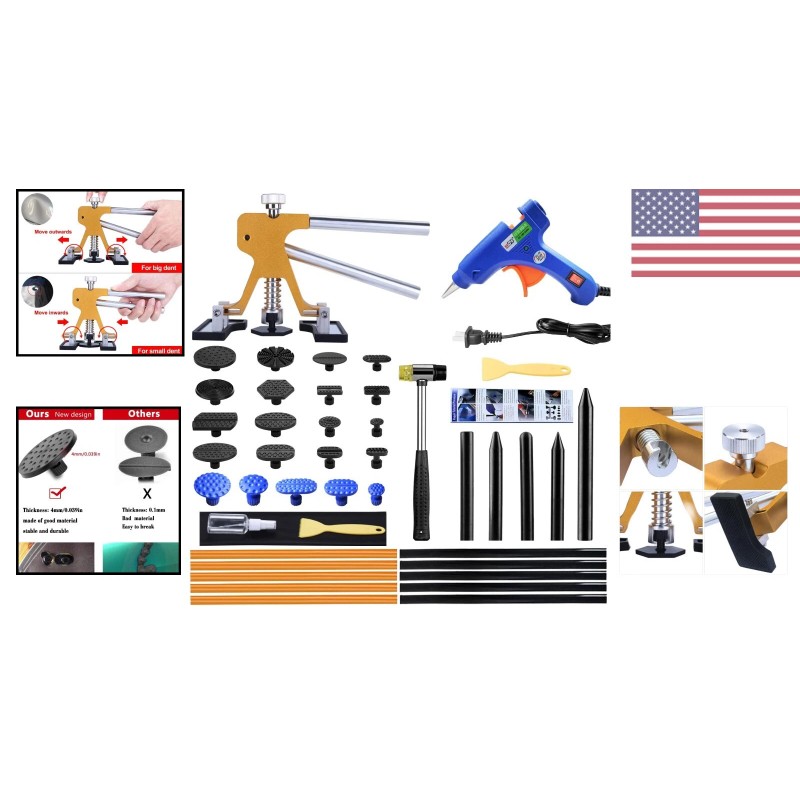 Adjustable Dent Puller Kit - Golden Dent Remover Tools for Car Ding Hail Removal