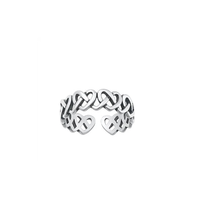 Unbranded Adjustable Knotted Hearts Toe Ring Genuine Sterling Silver 925 Oxidized 5 mm