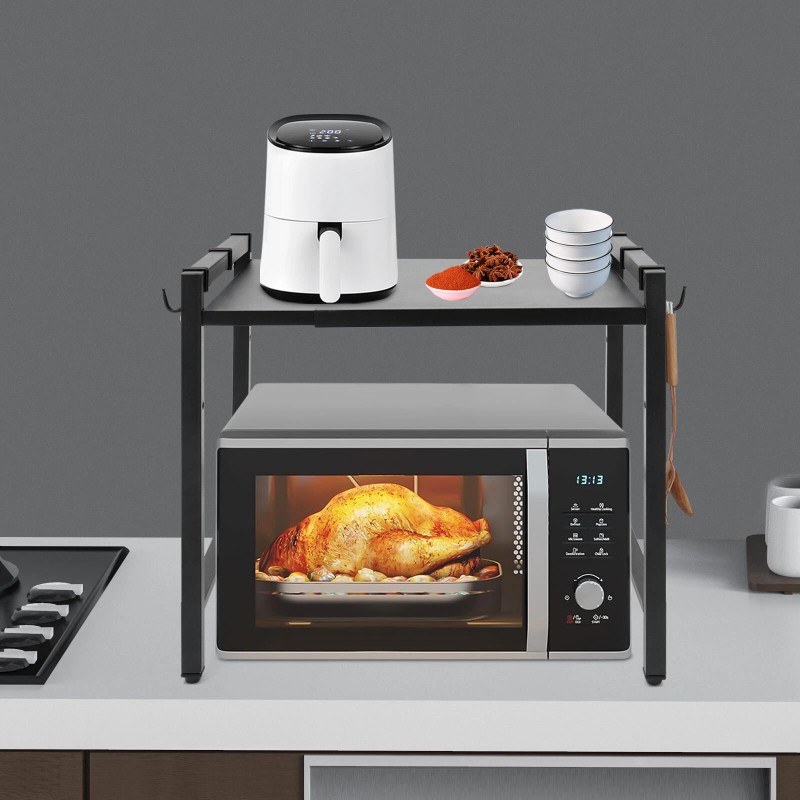 Extendable Microwave Oven Rack 2 Tiers Adjustable Microwave Stand Oven Shelf