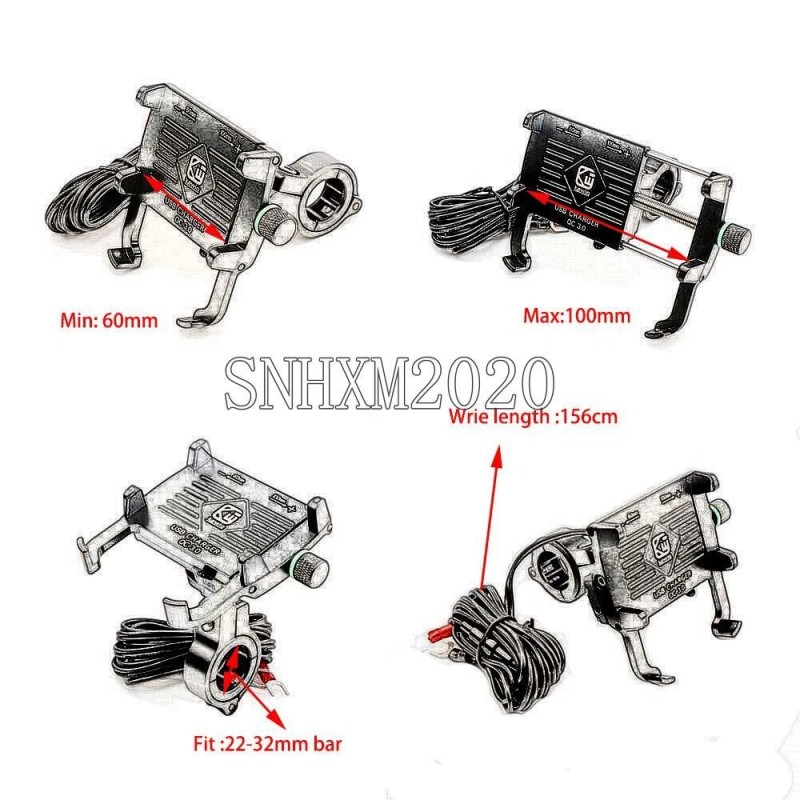Unbranded Aluminum Motorcycle Handlebar Cell Phone Holder Mount with USB Charger QC 3.0