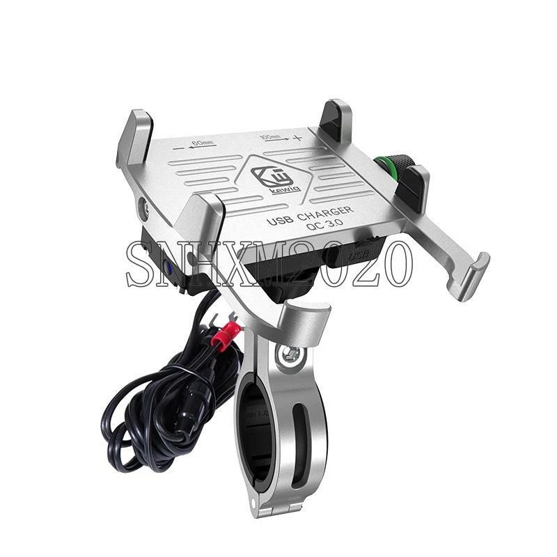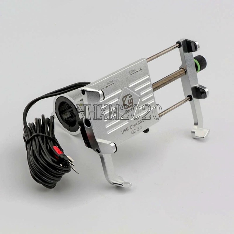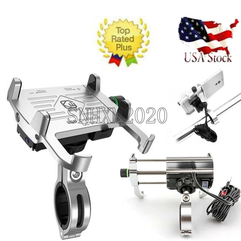 offSilver Handlebar Motorcycle Cell Phone GPS Holder Mount USB Charger Accessories