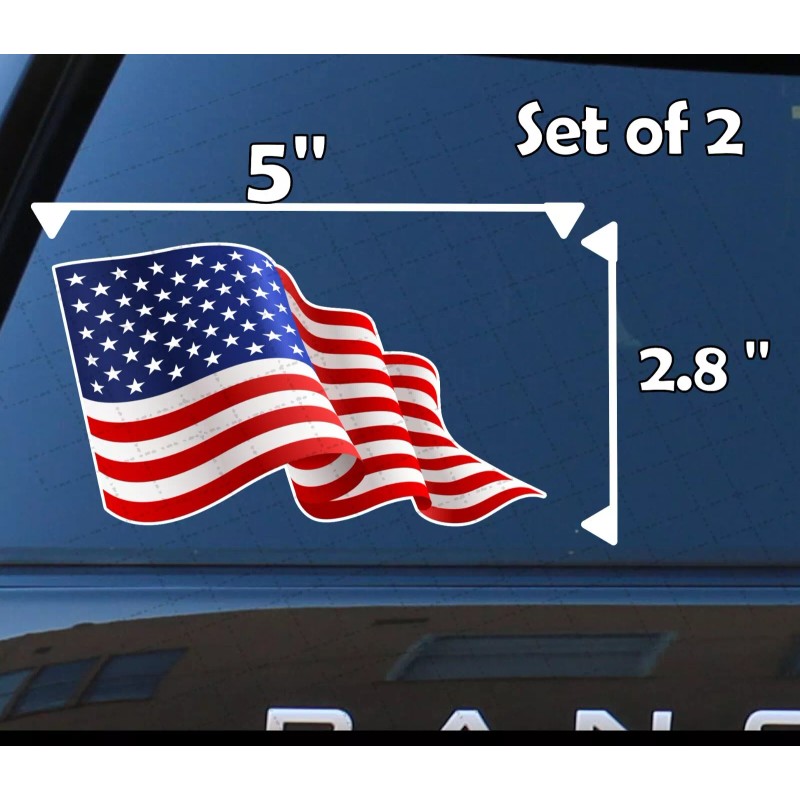 Unbranded American Flag Waving Stickers Self Adhesive Car Window Set of 2 USA Old Glory
