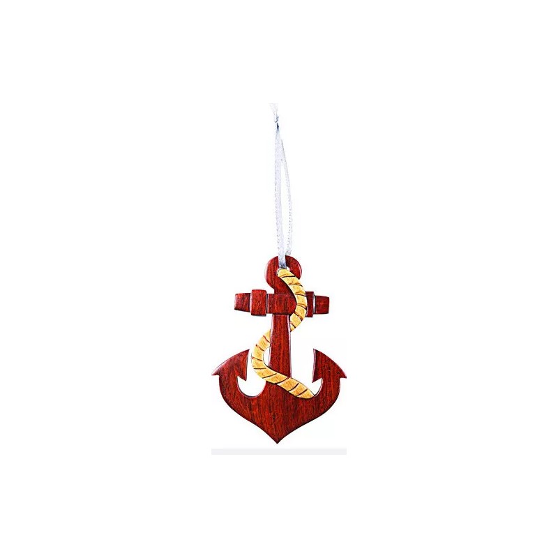 Unbranded Anchor - Double-sided Wood Intarsia Christmas Tree Ornament - Nautical theme