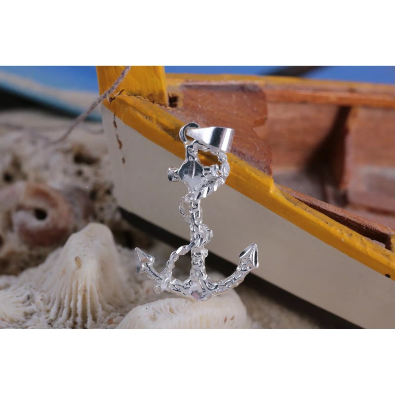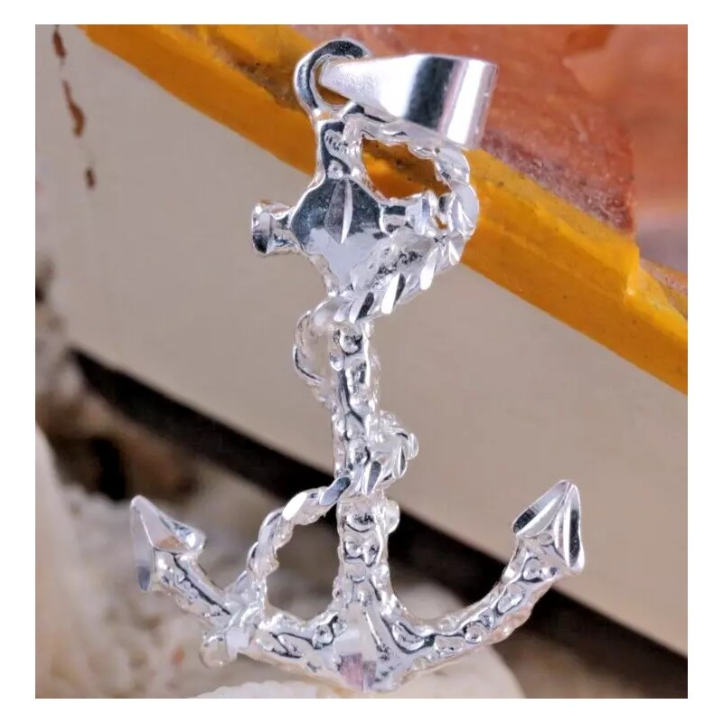 Solid 925 Sterling Silver rugged diamond cut 3 dimensional Anchor pendant with tangled rope. Nautical pendant