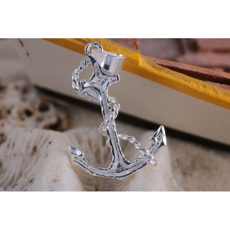 Unbranded ANCHOR WITH ROPE PENDANT STERLING SILVER, 1 1/2" with bail .925 DIAMOND CUT