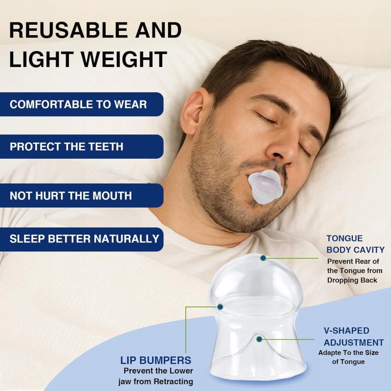 - Snore Solution: This snoring device offers a straight for ward solution by gently holding your tongue in a forward position, effectively keeping your upper airways open and reducing snoring.