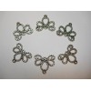 These are antiqued silver plated swirly drops which can also be used as connectors. A pretty detailed swirl design with a center loop, and two side loops.