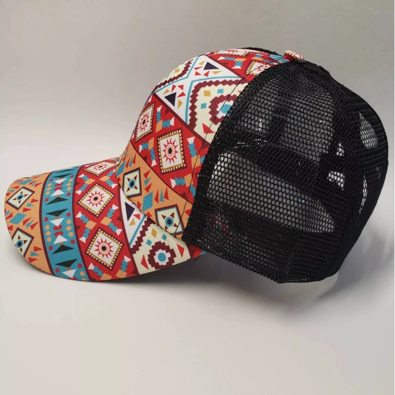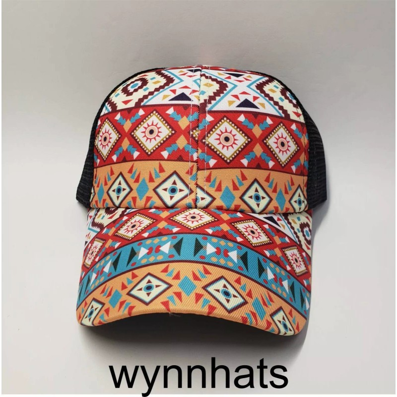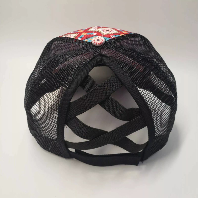 Unbranded Aztec. Messy High Bun Ponytail Adjustable. Mesh back Trucker Baseball Cap.