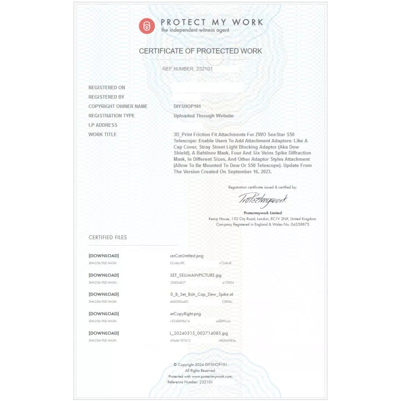 Unbranded (B) ZWO SeeStar S50 Telescope 5.5" Dew Cap Cover Bahtinov Mask Diffraction Spike - E_Complete Set Combo