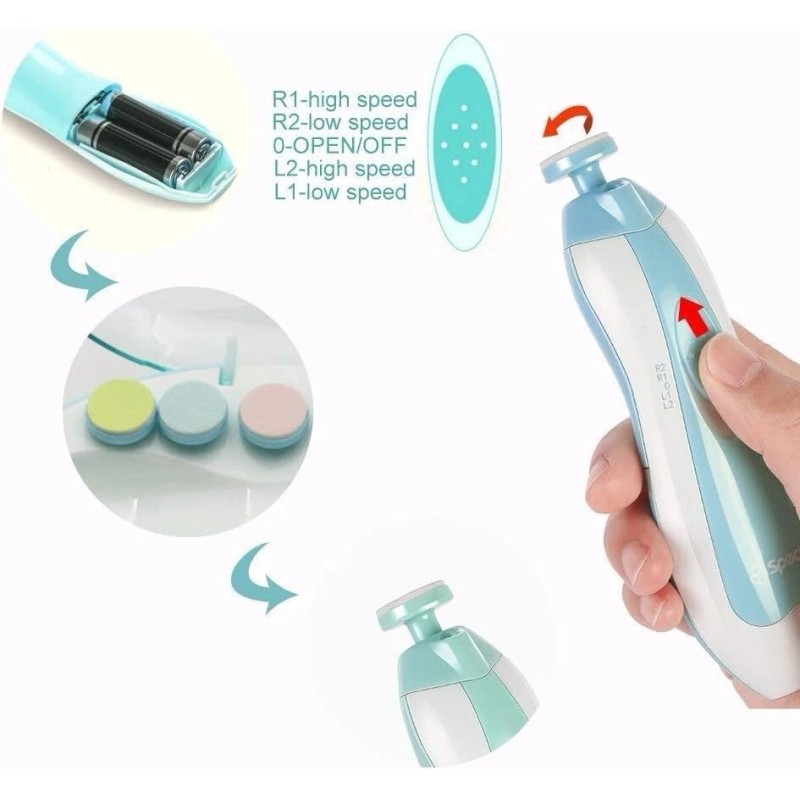 Baby Electric Nail File 8-in-1 Safe Trimmer with Grinding Heads for All Ages