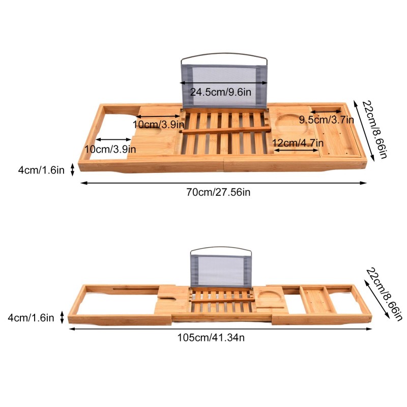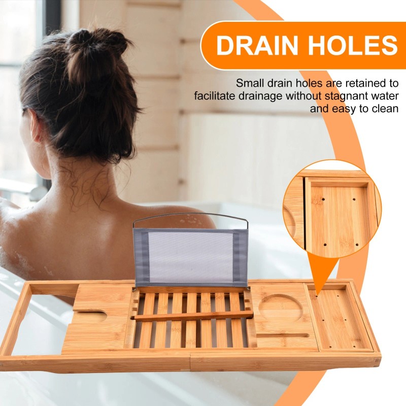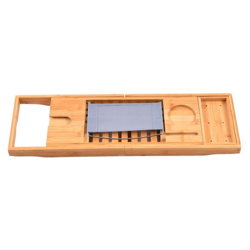 Unbranded Bamboo Extendable Bath Caddy Tray - Tub Rack, Wine & Tablet Holder
