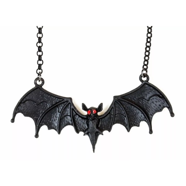 Bat Pendant Red stone Eye Goth Punk Premium Quality 20" Chain