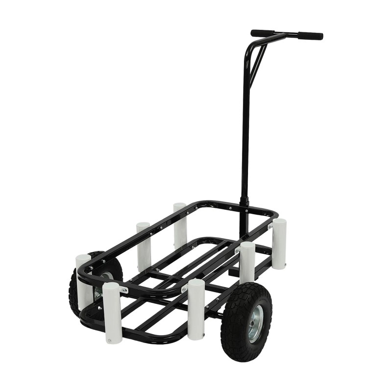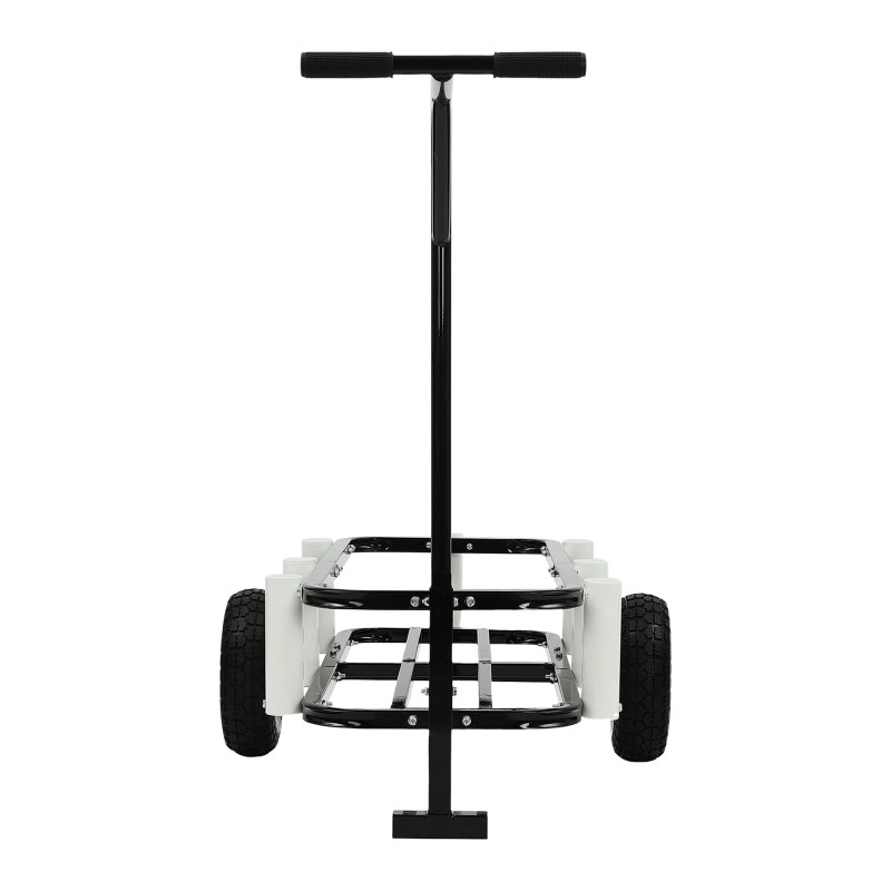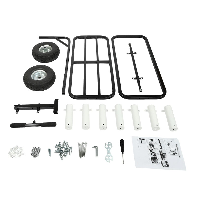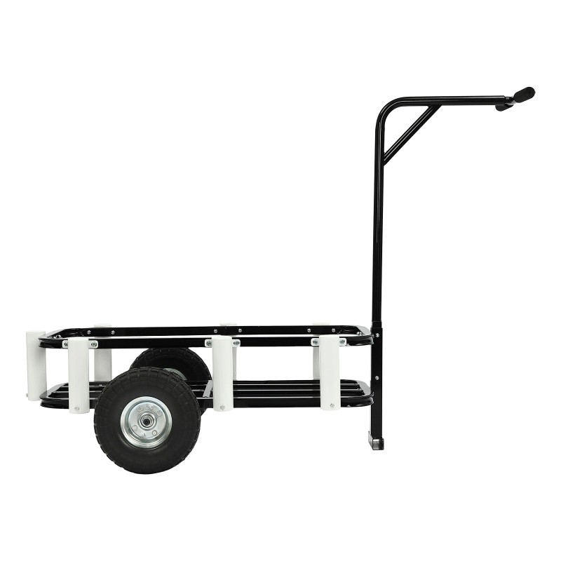 Our outdoor fishing cart is made of high-quality high-carbon steel and rubber, which is sturdy and durable. With a large capacity, you can easily organize various fishing gear or camping supplies. Two large wheels and a comfortable handle allow you to move to different places easily. It is ideal for fishing enthusiasts and camping lovers!