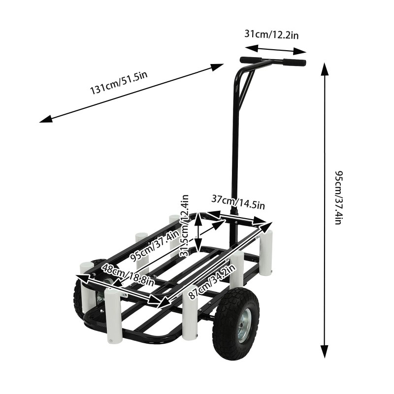 Fishing Assistant: It has a large frame(34.25*14.57*12.4 in) for you to place your fishing equipment, and seven fishing rod holders around it to put your rods in, which can reduce your carrying pressure to enhance your fishing experience.