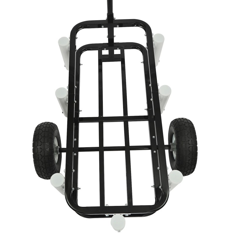 Our outdoor fishing cart is made of high-quality high-carbon steel and rubber, which is sturdy and durable. With a large capacity, you can easily organize various fishing gear or camping supplies. Two large wheels and a comfortable handle allow you to move to different places easily. It is ideal for fishing enthusiasts and camping lovers!