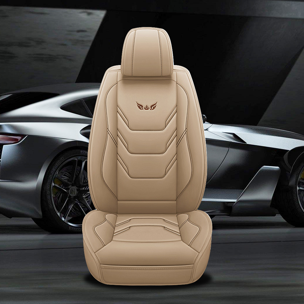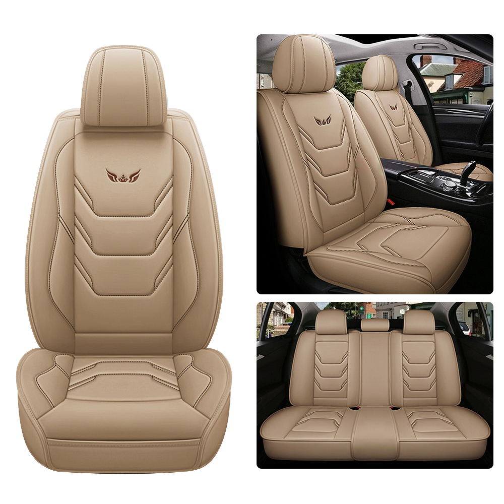 Beige Universal Leather Full Set Car Seat Cover 5-Seats Front&Rear Accessories